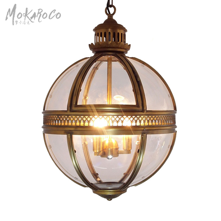 Foucult Gyro araña de cristal decoración cristal transparente droplight país americano restaurar maneras antiguas, jaula de hierro forjado