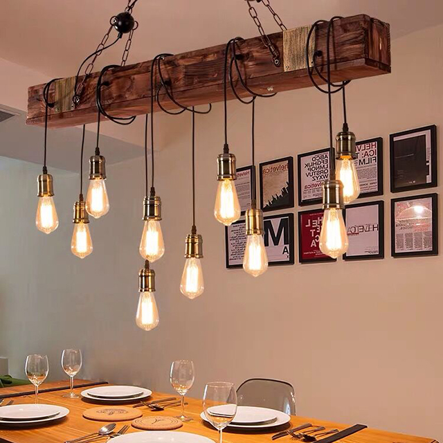Hierro forjado de madera Do Old Teardrop Candle Tube Sala de estar Comedor Estudio Dormitorio Jaula de madera Lámpara colgante